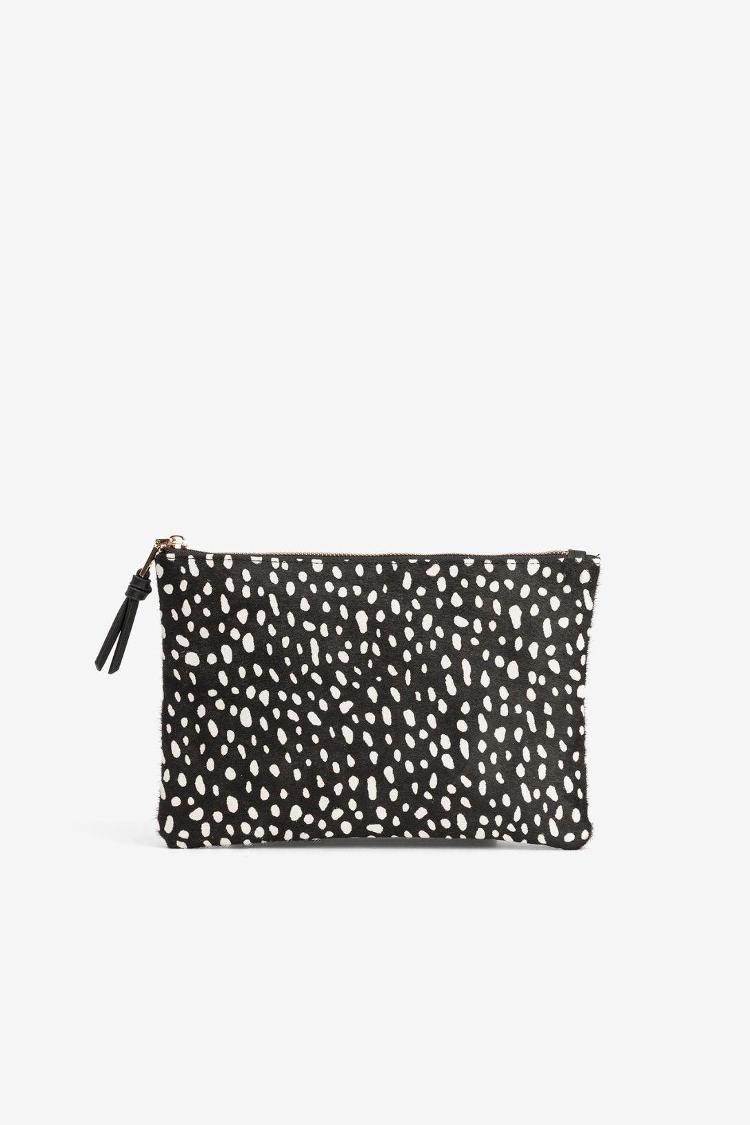 Porta monedas negro con estampado de puntos blancos y cierre de cremallera dorado elegante. 50% POLYURETHANE 50% LEATHER