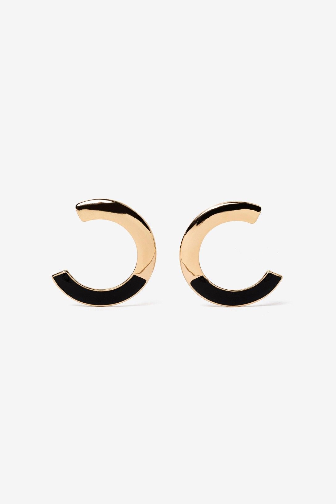 Pendientes medianos dorados con detalles de colores en forma redonda. Cierre con tapón.